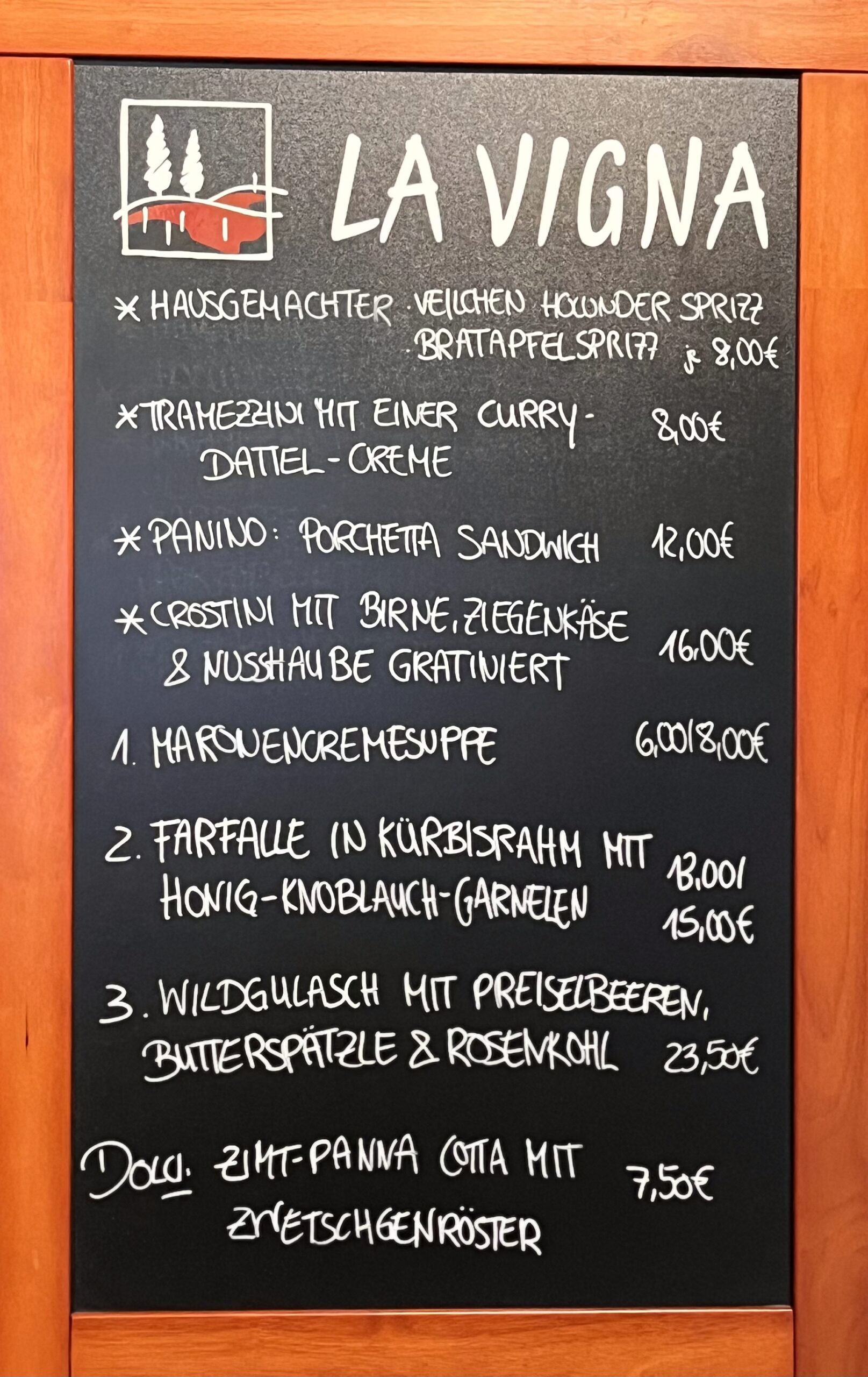 Das La Vigna – italienischer Lebensmittel-und Weinhandel mit anhängenden Bistro. Von Südtirol bis Sizilien und Sardinien findest Du über 100 verschiedene Weine in unserem Sortiment. Darüber hinaus verkaufen wir italienische Lebensmittel, die das Feinschmecker-Herz begehren. In unserem Bistro haben wir eine feste Speisekarte sowie eine wöchentlich wechselnde Wochenkarte. Ob Antipasti, Pasta oder unser Toast La Vigna, für jeden ist etwas Leckeres dabei. Zum Essen können unsere Weine, die wir im Sortiment führen, probiert und getrunken werden. Unser lauschiger Innenhof lädt zum Verweilen und Entspannen in italienischer und gemütlicher Atmosphäre ein.