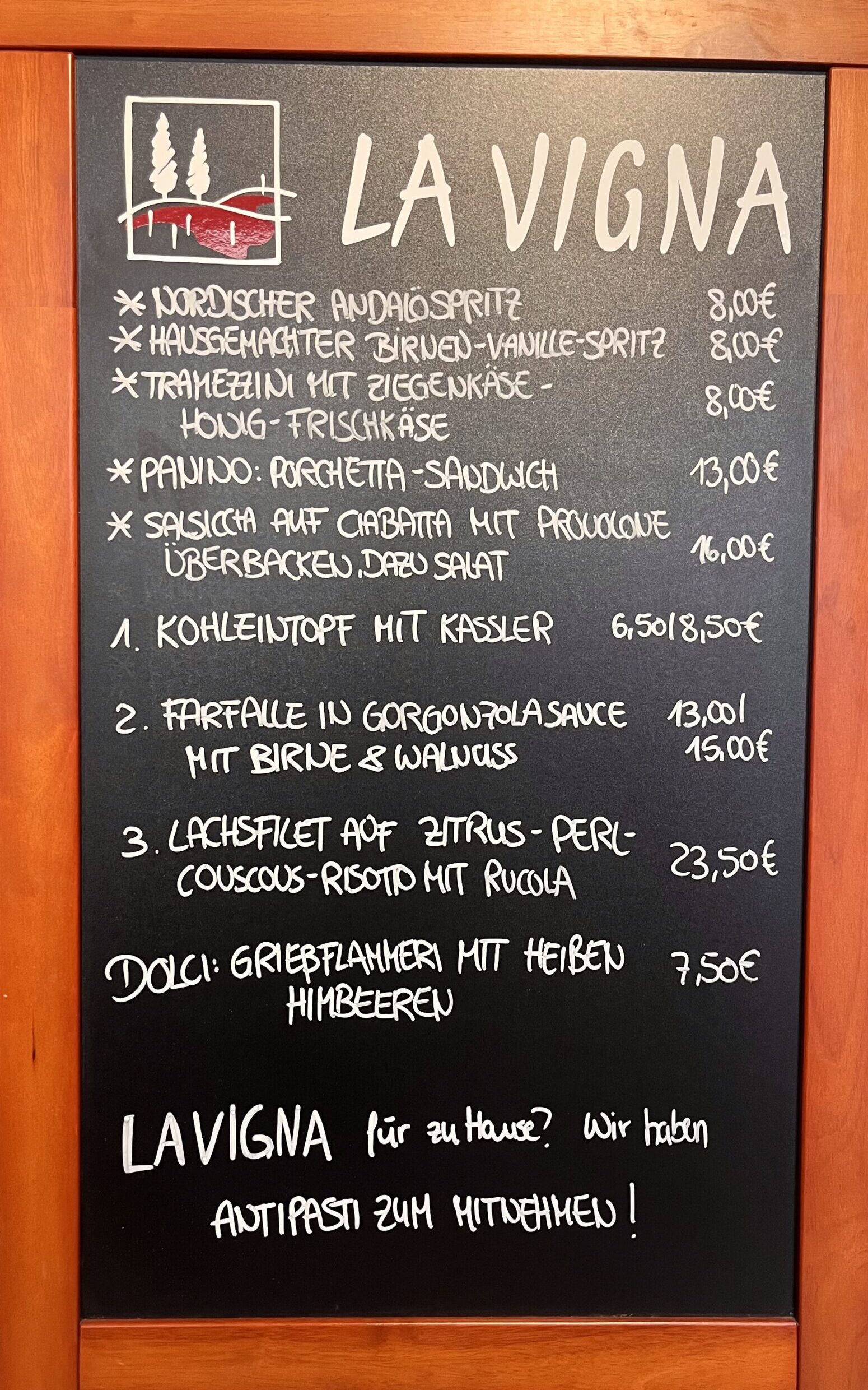 Das La Vigna – italienischer Lebensmittel-und Weinhandel mit anhängenden Bistro. Von Südtirol bis Sizilien und Sardinien findest Du über 100 verschiedene Weine in unserem Sortiment. Darüber hinaus verkaufen wir italienische Lebensmittel, die das Feinschmecker-Herz begehren. In unserem Bistro haben wir eine feste Speisekarte sowie eine wöchentlich wechselnde Wochenkarte. Ob Antipasti, Pasta oder unser Toast La Vigna, für jeden ist etwas Leckeres dabei. Zum Essen können unsere Weine, die wir im Sortiment führen, probiert und getrunken werden. Unser lauschiger Innenhof lädt zum Verweilen und Entspannen in italienischer und gemütlicher Atmosphäre ein.
